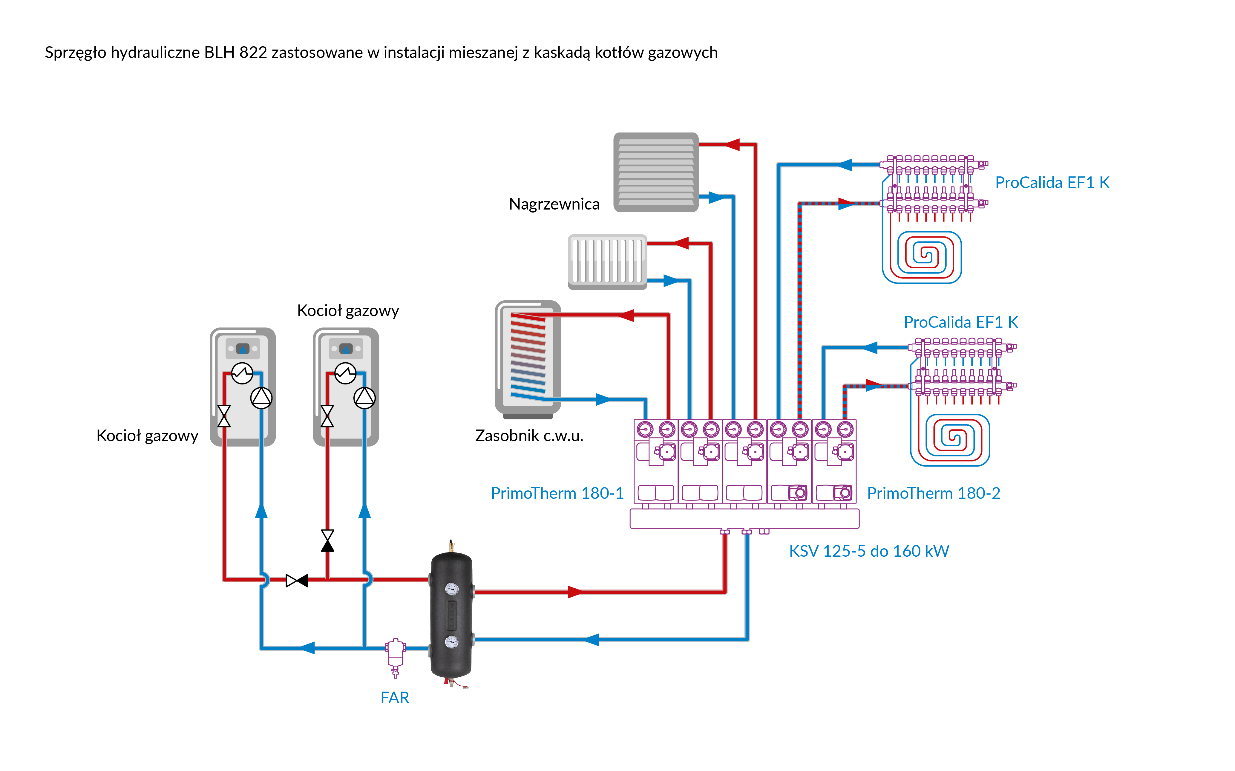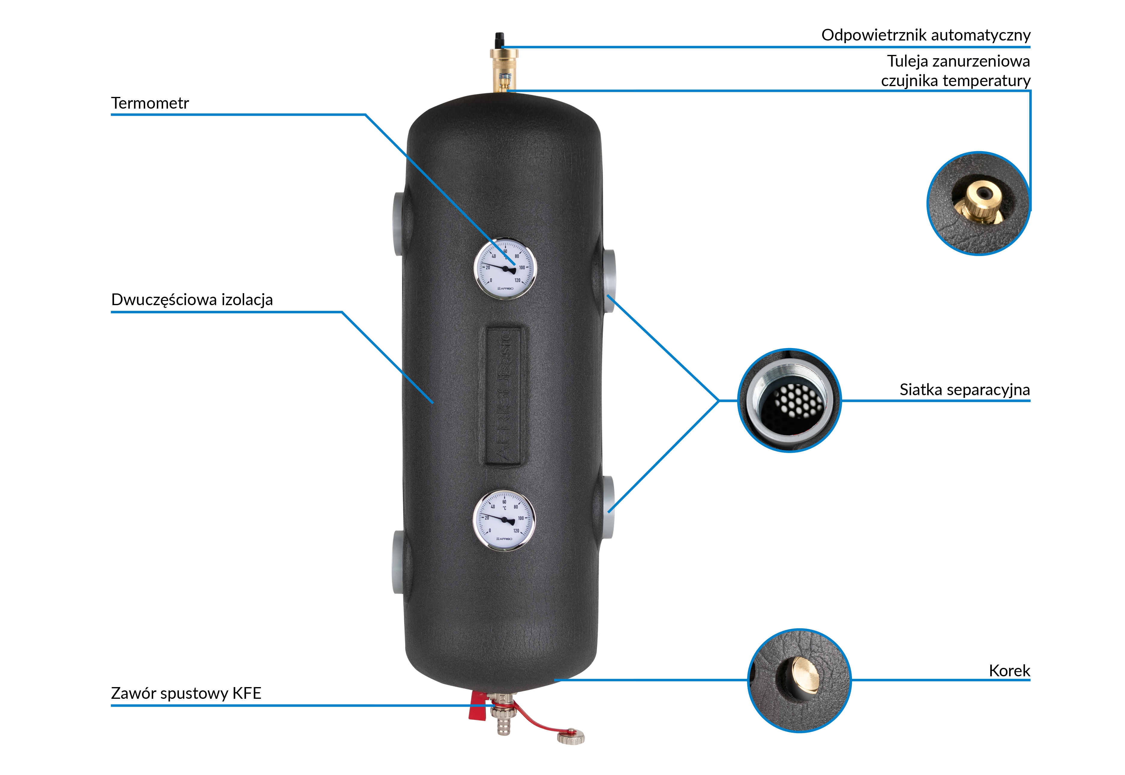 Rozdziela hydraulicznie obieg źródła od obiegów po stronie instalacji.