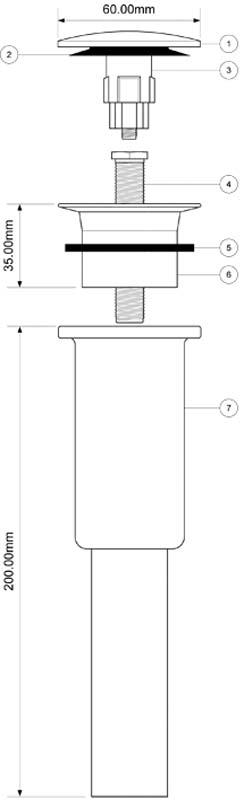 Spust umywalkowy 32x220mm wykonany z mosiądzu, z mechanizmem "klik-klak".