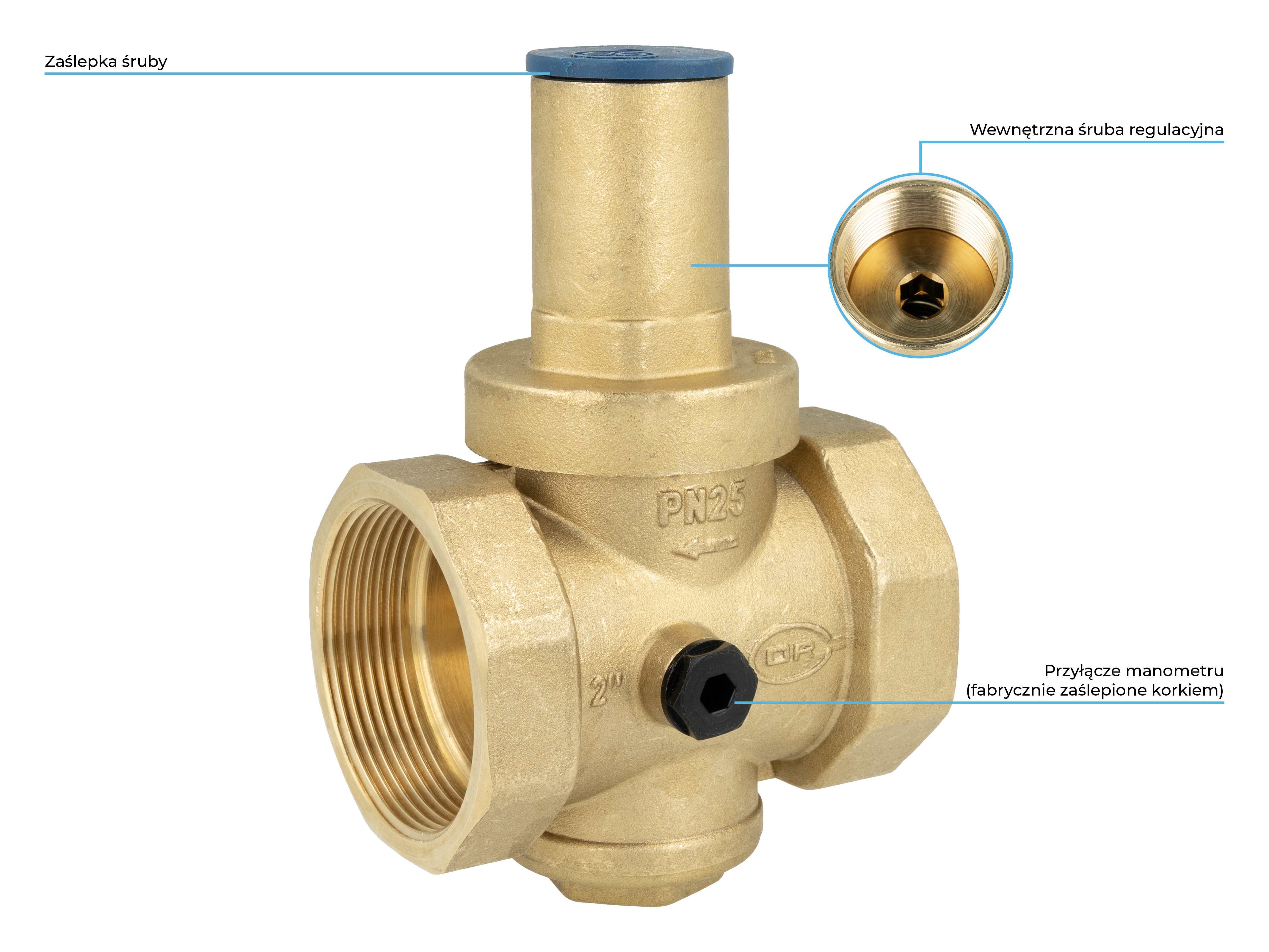 Obniża i stabilizuje ciśnienie wody do ustawionej wartości niezależnie od zmian ciśnienia na wlocie do reduktora.