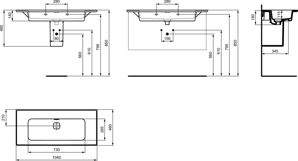 • Typ: Wpuszczane w blat/Z powierzchnią boczną