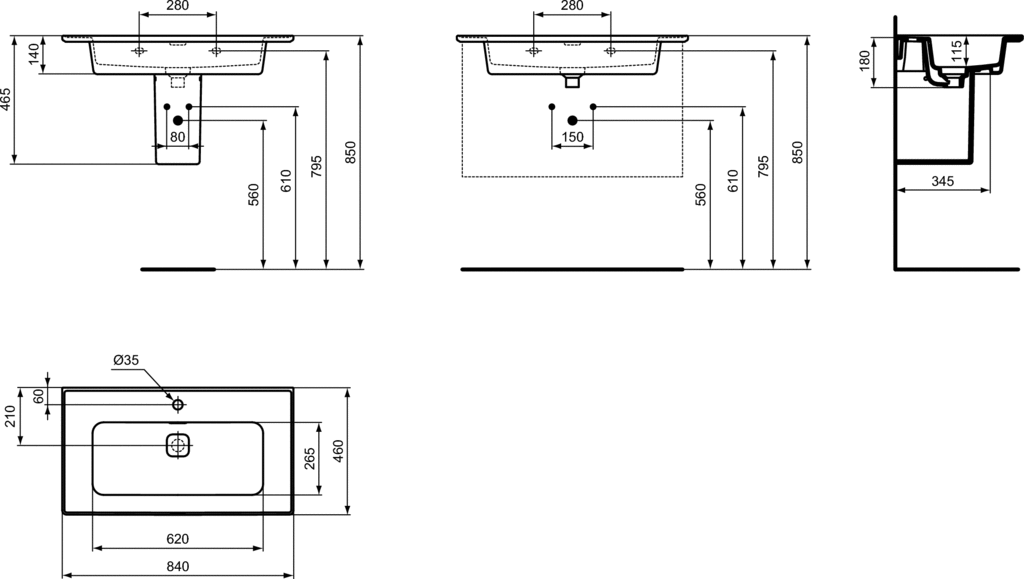 - Typ: Wpuszczane w blat/Z powierzchnią boczną