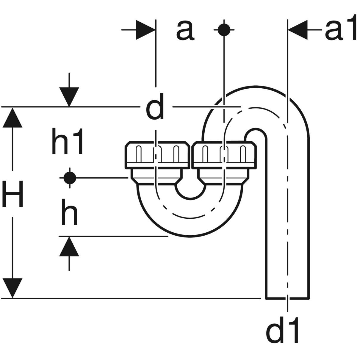 Syfon rurowy Geberit do zlewu, z nakrętką, wpust pionowy i wylot pionowy: d=50mm, d1=50mm, Czarny