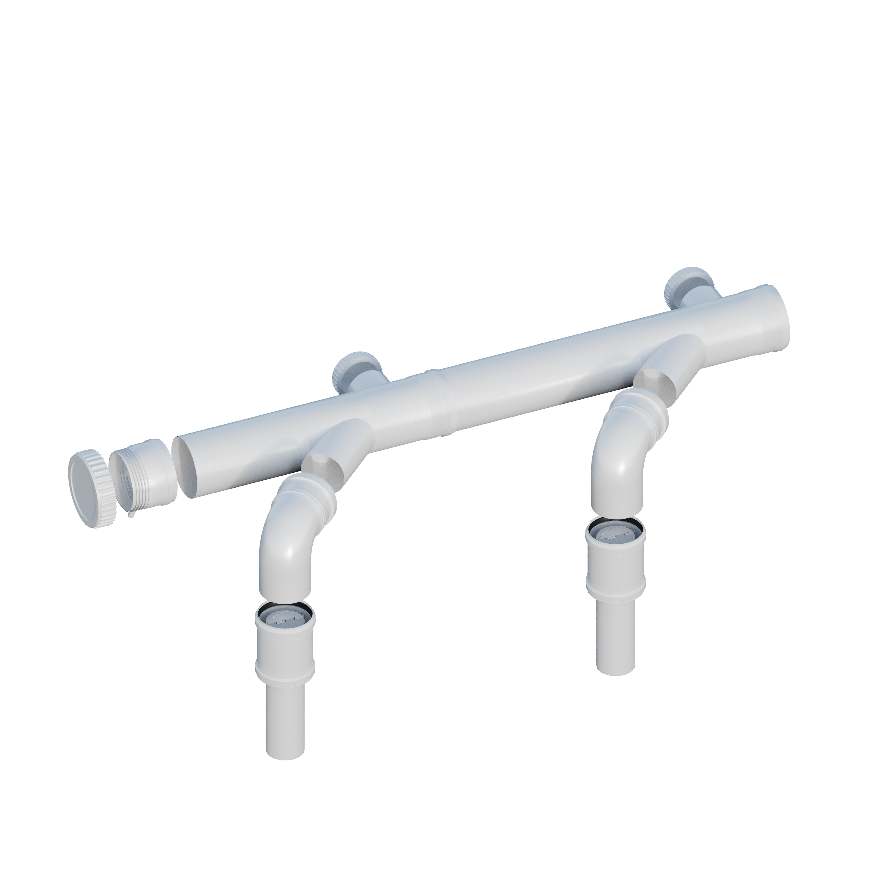 bardzo łatwy montaż, możliwość podłączenia dwóch kotłów jednocześnie, gwarancja 15 lat, estetyczne wykonanie Pakiet zawiera elementy do podłączenia dwóch kotlów DN 160/80: kolektor, 2 adaptery z klapką, 2 kolana 87°, pokrywa rewizyjna z odprowadzaniem kondensatu,