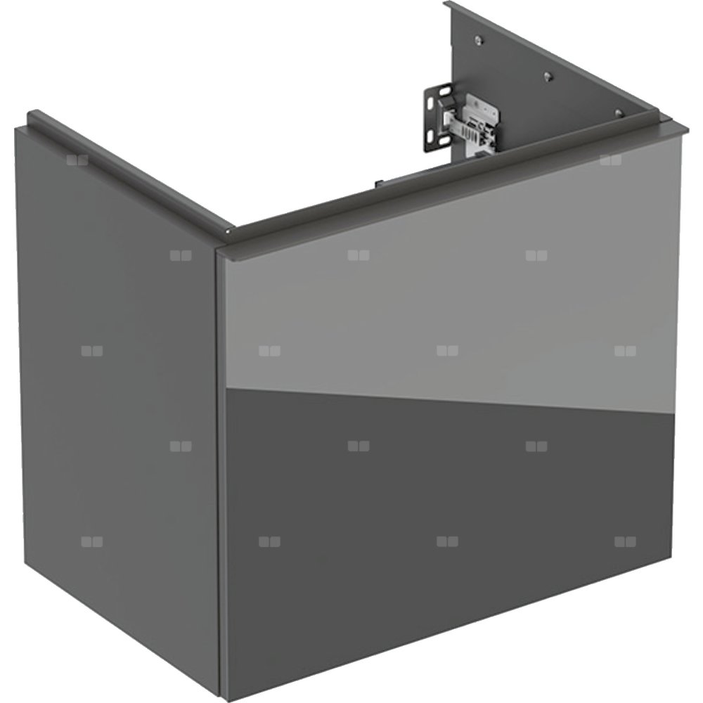 Szafka pod umywalkę Geberit Acanto, z szufladą i szufladą wewnętrzną, krótka: Szerokość umywalki=60cm, Korpus: lava / lakierowany matowy, Front: lava / szkło błyszczące, Uchwyt: lava / malowany proszkowo, matowy