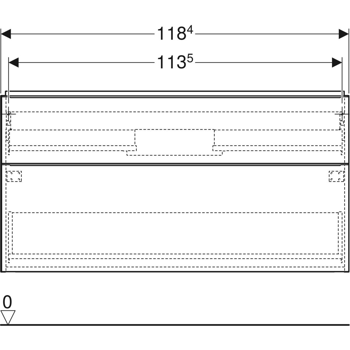 Szafka pod umywalkę Geberit iCon, z dwoma szufladami: Szerokość umywalki=120cm, Korpus i front: dąb / melaminowa struktura drewna, Uchwyt: lava / malowany proszkowo, matowy