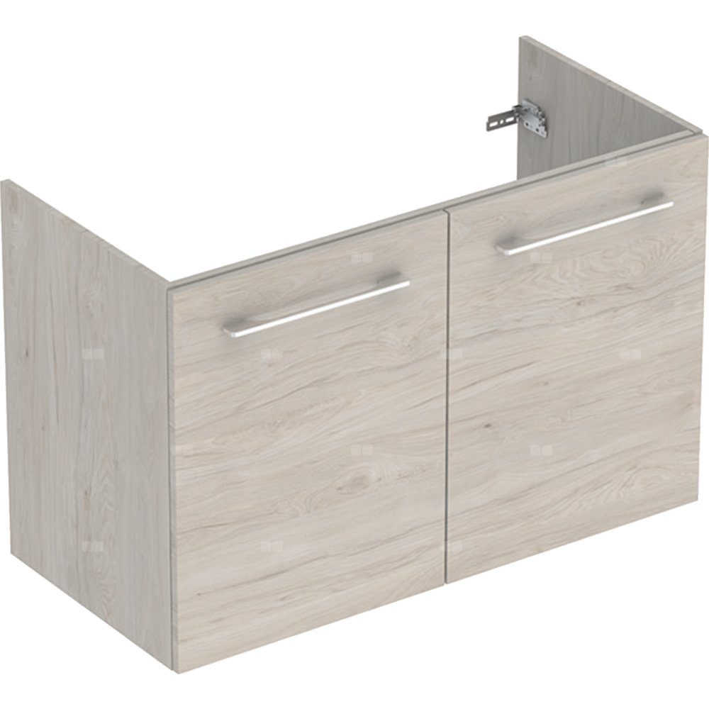 Szafka pod umywalkę meblową Geberit Selnova Square, slim, z dwoma drzwiami: B=98.8cm, Szerokość umywalki=100cm, H=63.5cm, T=50.2cm, Orzech włoski hickory jasny / Melamina, struktura drewna
