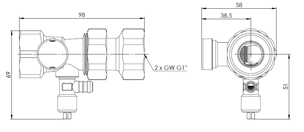 Wbudowany zawór odcinający z kołpakiem i plombą.