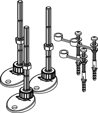 Stopki montażowe do syfonu odpływowego TECEdrainprofile „standard” i „niskiego” do łatwej regulacji wysokości i wypoziomowania podczas montażu na stropie. Zakres regulacji dla syfonu „standard”: 95-194 mm, oraz dla syfonu "niskiego": 65-164 mm (od dolnej krawędzi stopki do górnej krawędzi odpływu lub jastrychu).