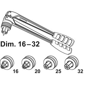 TECEflex ręczne narzędzie kalibrujące typu RAZ-V w zakresie średnic 16 - 32 mm.