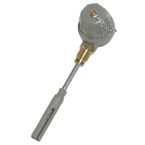 Termistorowy czujnik wartości granicznej, składa się z kątowej wtyczki oraz regulowanej sondy.