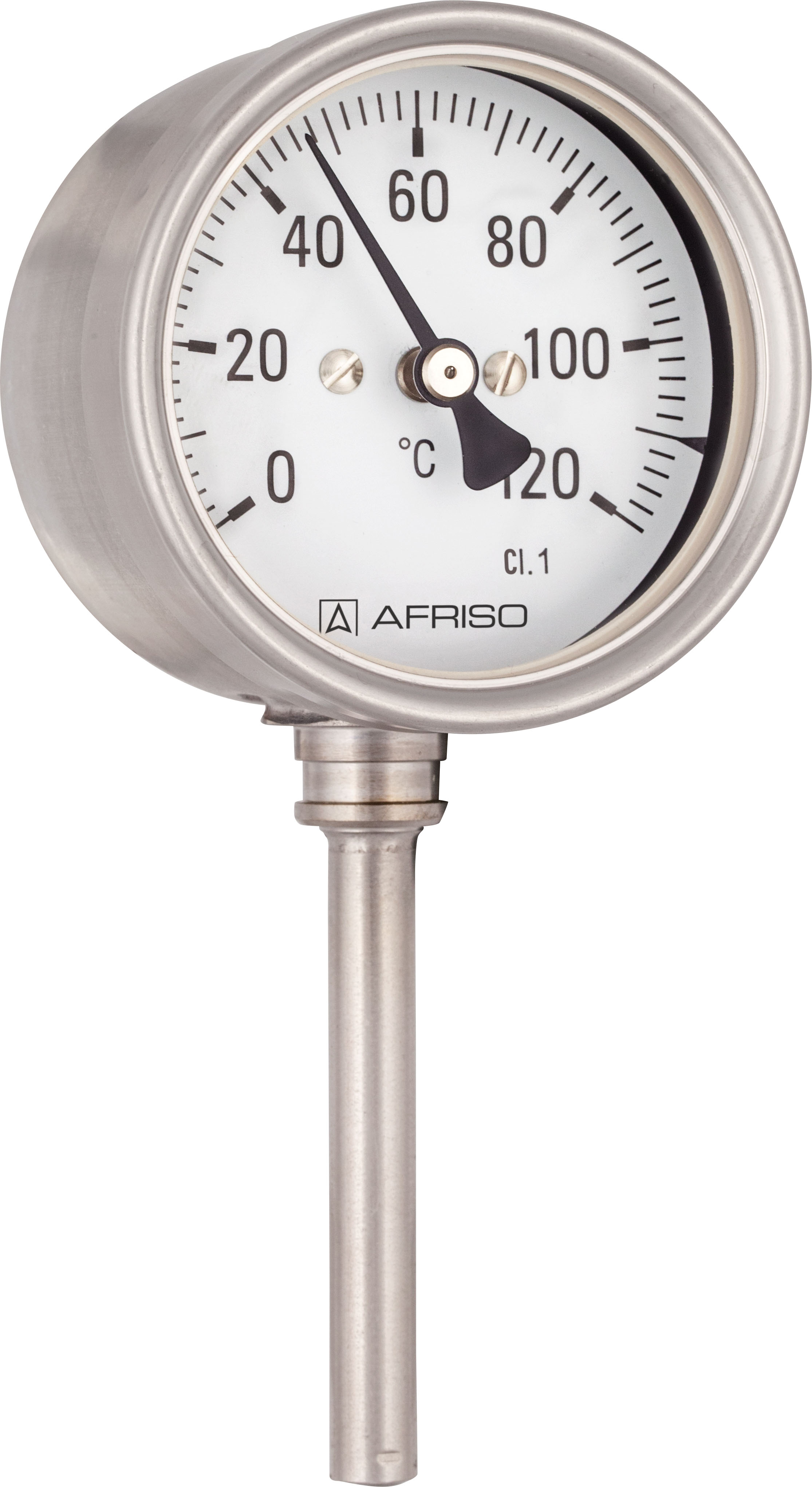 Termometr bimetaliczny AFRISO BiTh Ch, D412 fi 63 mm 0…60'C tuleja 100 mm połączenie ax