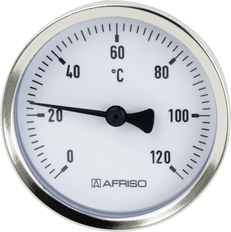 Termometr bimetaliczny AFRISO BiTh fi 63 mm 0…120'C tuleja 150 mm połączenie ax
