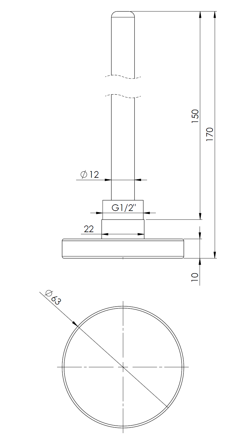 Termometr bimetaliczny AFRISO BiTh fi 63 mm -20…60'C tuleja 150 mm połączenie ax