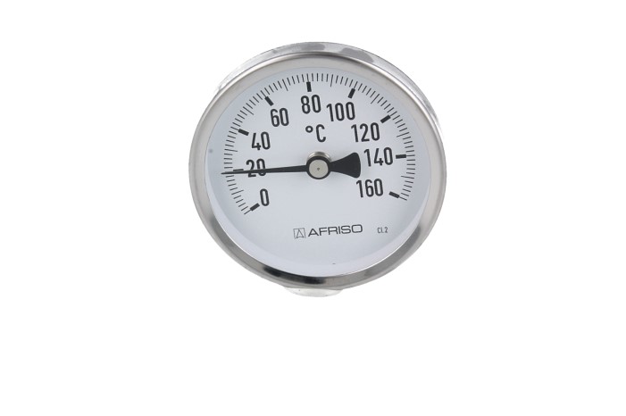 Termometr bimetaliczny AFRISO BiTh fi 80 mm 0…160'C tuleja 40 mm połączenie ax