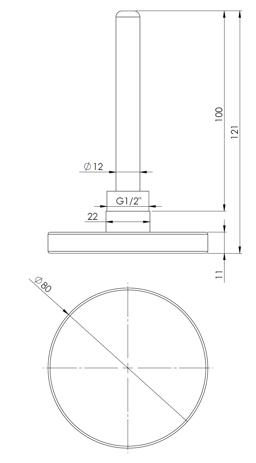 Termometr bimetaliczny AFRISO BiTh fi 80 mm 0…60'C tuleja 100 mm połączenie ax