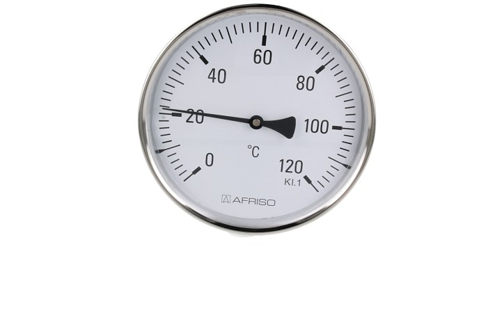 Termometr bimetaliczny AFRISO BiTh I, D211 fi 160 mm 0…120'C tuleja 100 mm połączenie ax