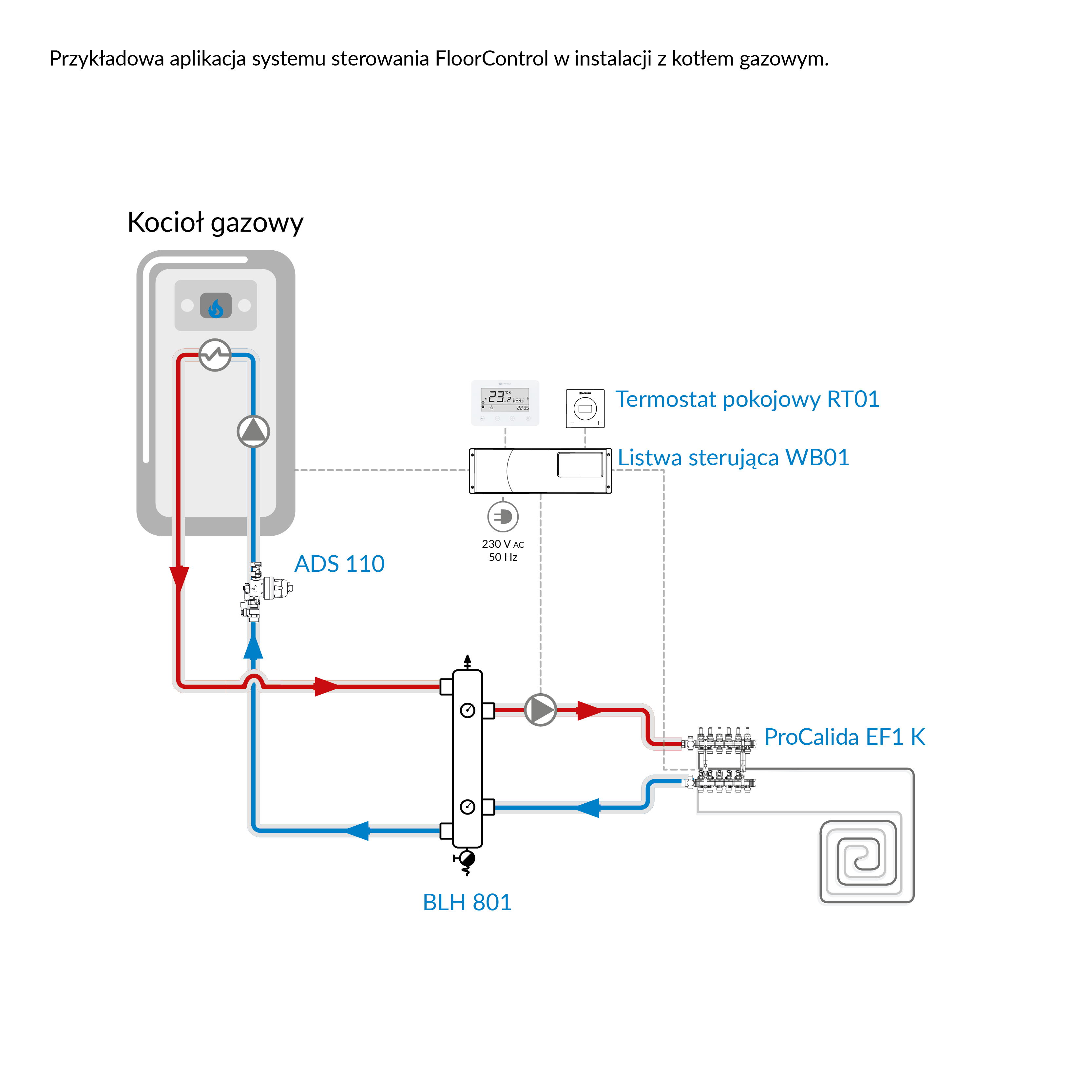 Przesyła sygnały do listwy sterującej systemu FloorControl lub steruje (on/off) zewnętrznym urządzeniem.