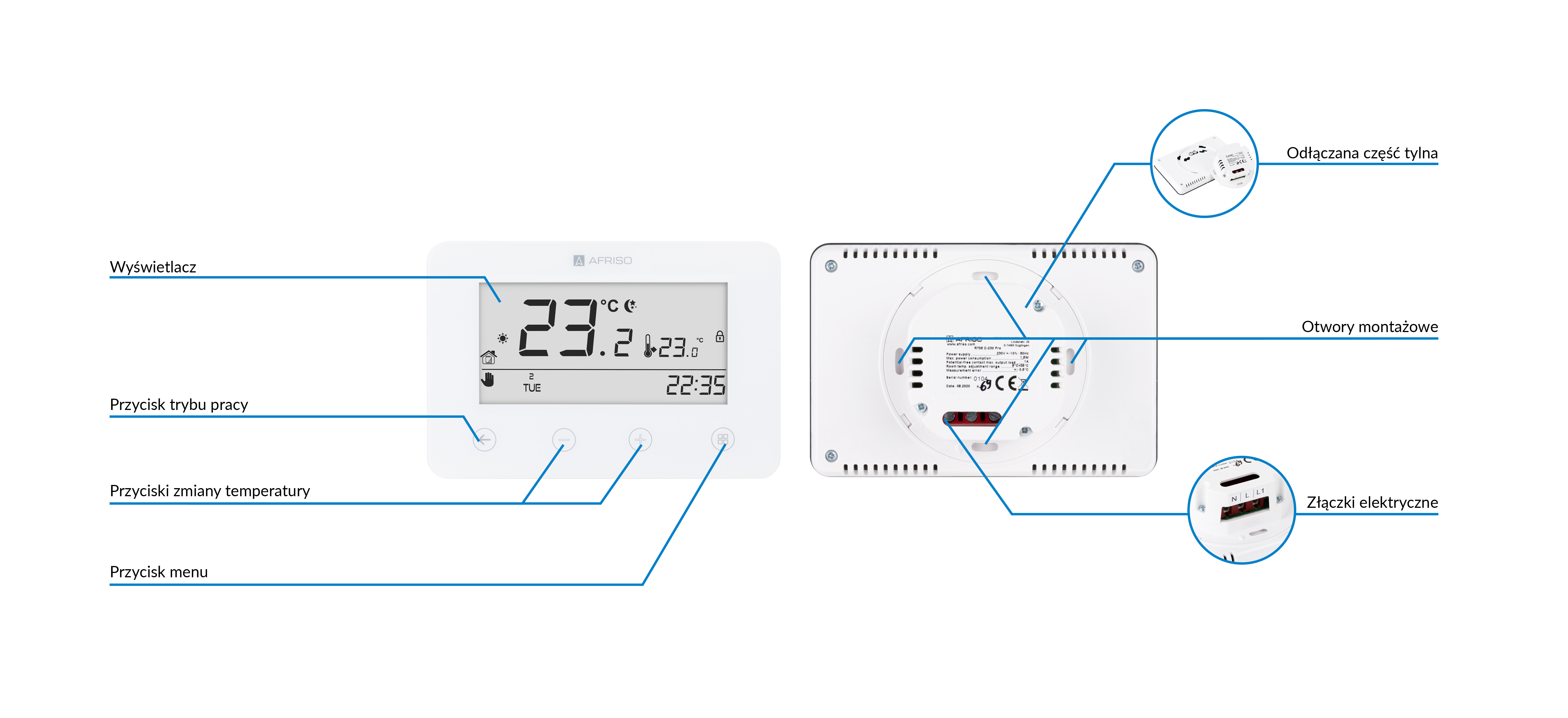 Termostat AFRISO RT05 zasilanie 230 V AC floorcontrol 5-35'C