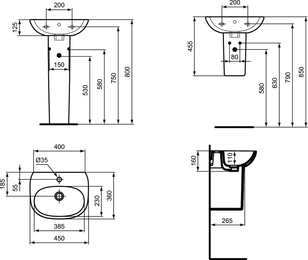 1 otwór na baterię wybity centralnie. W kartonowym opakowaniu. PL-EN 14688. Do montażu z: małym postumentem T352101, małym półpostumentem T352001 lub samodzielnie z syfonem. Rekomendowane wyposażenie: - mały postument (T352101). mały półpostument (T352001). zestaw montażowy M8 x 90 mm (K714467). syfon G1 1/4 - typ rurowy (A2305AA). zawór kątowy (przyłącze wodne G1/2, przyłącze z mieszaczem 10 mm/G3/8) - 1 szt. (B7883AA). rozeta do syfonu G1 1/4 (w przypadku montażu z baterią z korkiem automatycznym) (B4801AA).