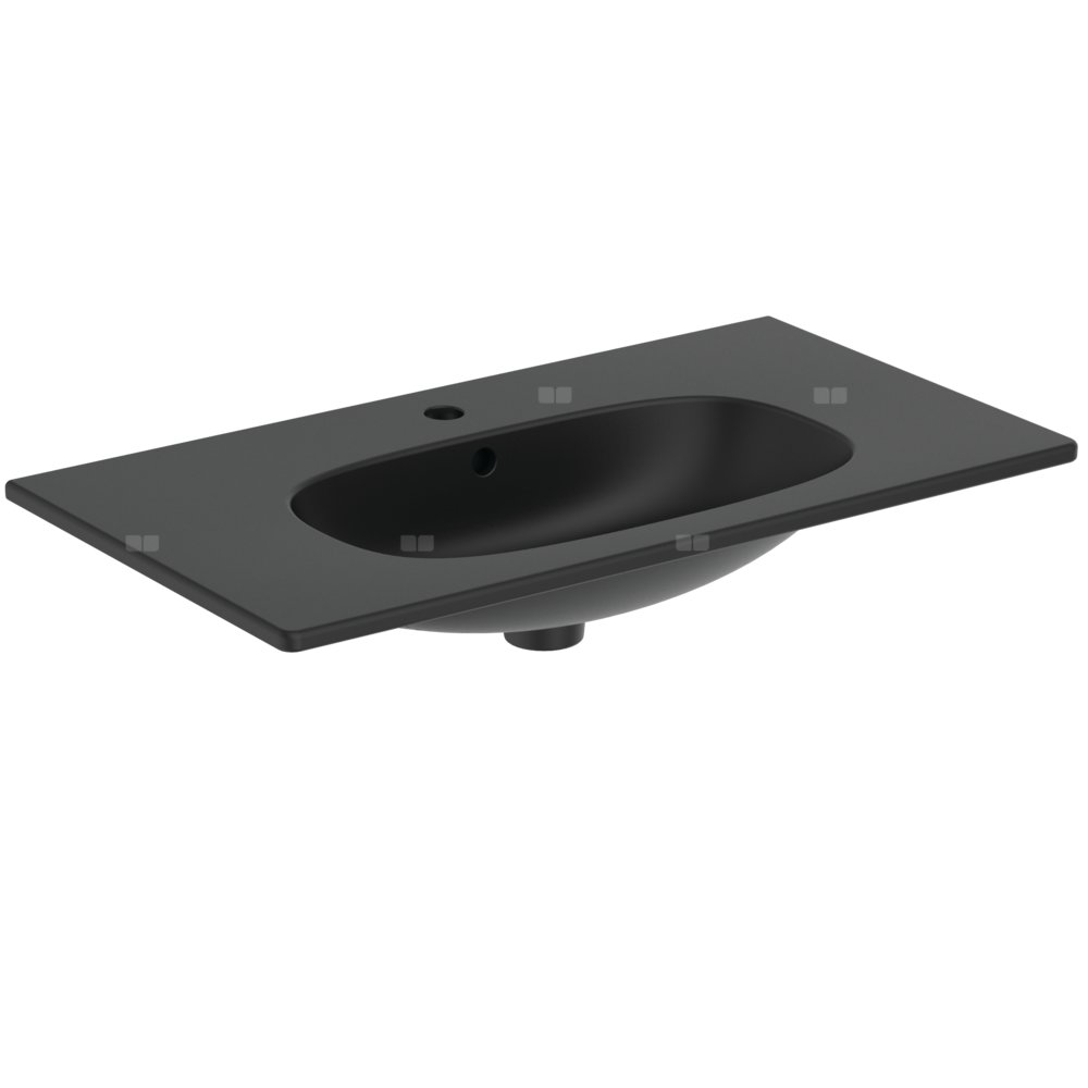 Umywalka Strada z powierzchniami bocznymi oraz centralnym otworem na baterię i przelewem. Do montażu z szafką pod umywalkę Tesi 80 cm lub samodzielnie z syfonem.