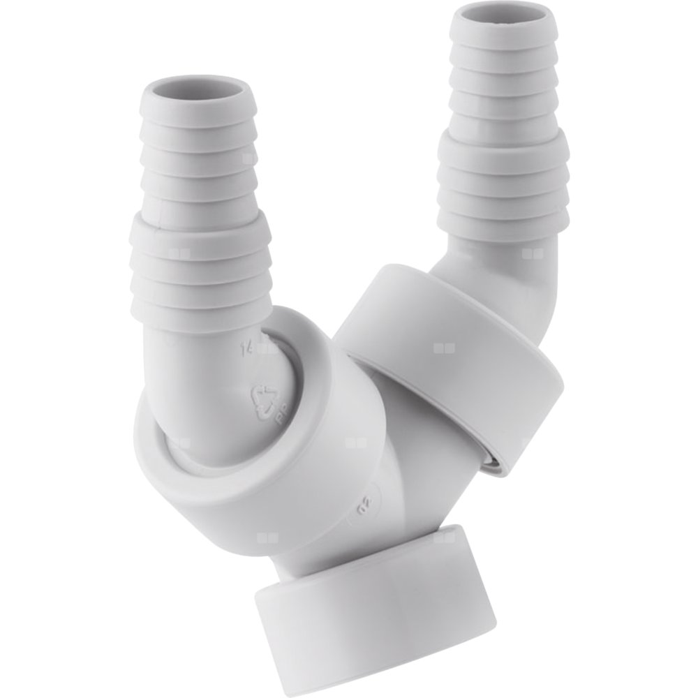 Trójnik GEBERIT PP 19 mm x 1'' x 19 mm (łącznik kątowy wężyka x GW z klapką zwrotną x łącznik kątowy wężyka), kolor biały-alpin