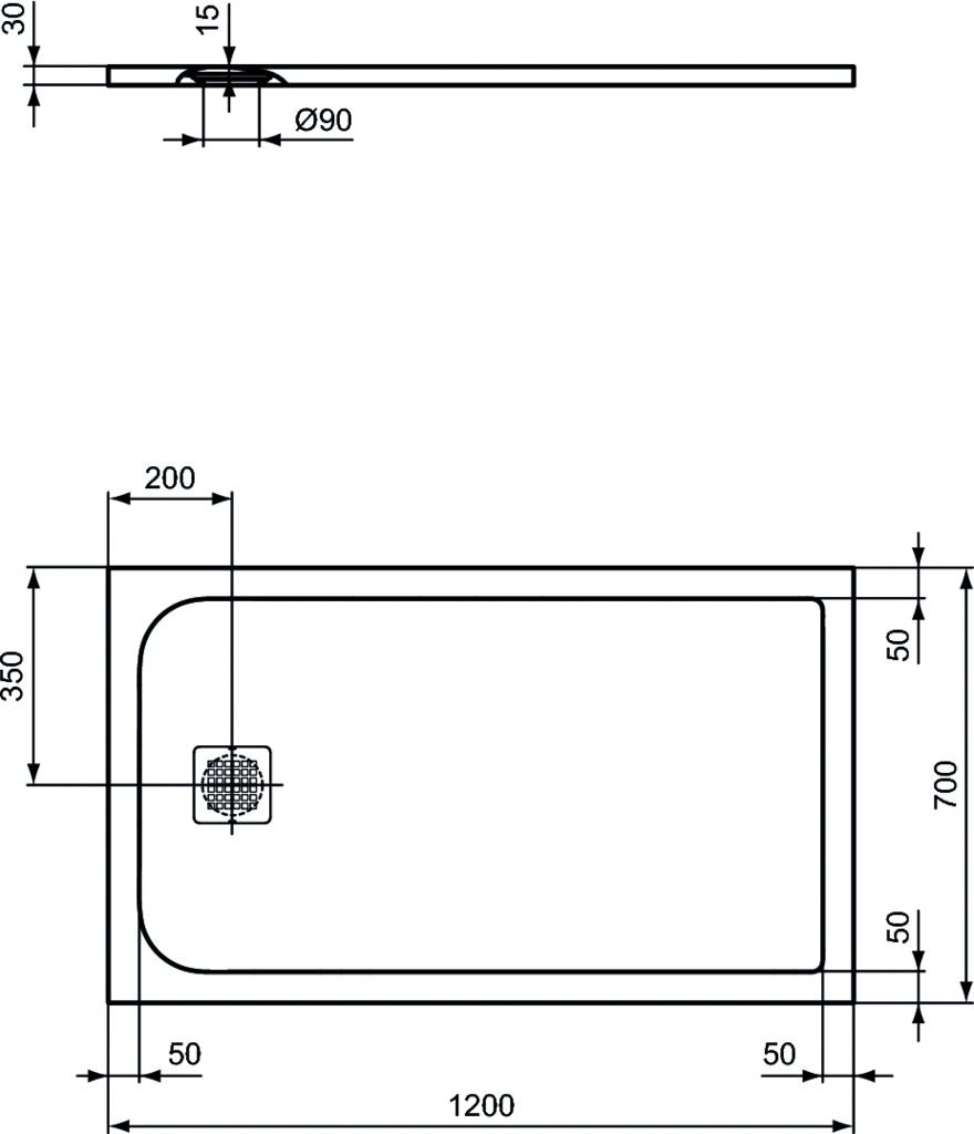 Brodzik grubości 30mm wykonany z materiału IDEAL SOLID. Klasa anty-poślizgowa C. Montaż na podłodze lub nad podłogą (do skompletowania z nogami do brodzika). Pokrywa odpływu ze stali nierdzewnej. Zalecane dodatkowe elementy: Syfon do brodzika - bez pokrywy (K936367). Uniwersalny zestaw nóg do brodzika (dla rozmiaru 1000 mm i większych - konieczne są 2 szt. K936467) (K936467).