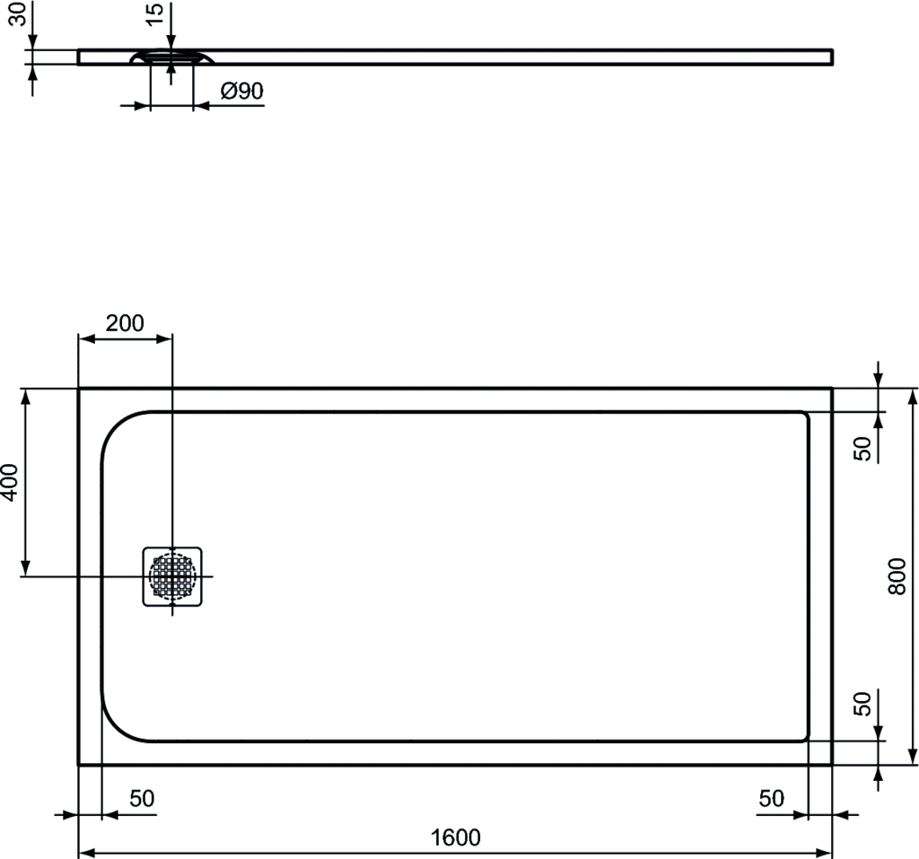 Brodzik grubości 30mm wykonany z materiału IDEAL SOLID. Klasa anty-poślizgowa C. Montaż na podłodze lub nad podłogą (do skompletowania z nogami do brodzika). Pokrywa odpływu ze stali nierdzewnej. Zalecane dodatkowe elementy: Syfon do brodzika - bez pokrywy (K936367). Uniwersalny zestaw nóg do brodzika (dla rozmiaru 1000 mm i większych - konieczne są 2 szt. K936467) (K936467).