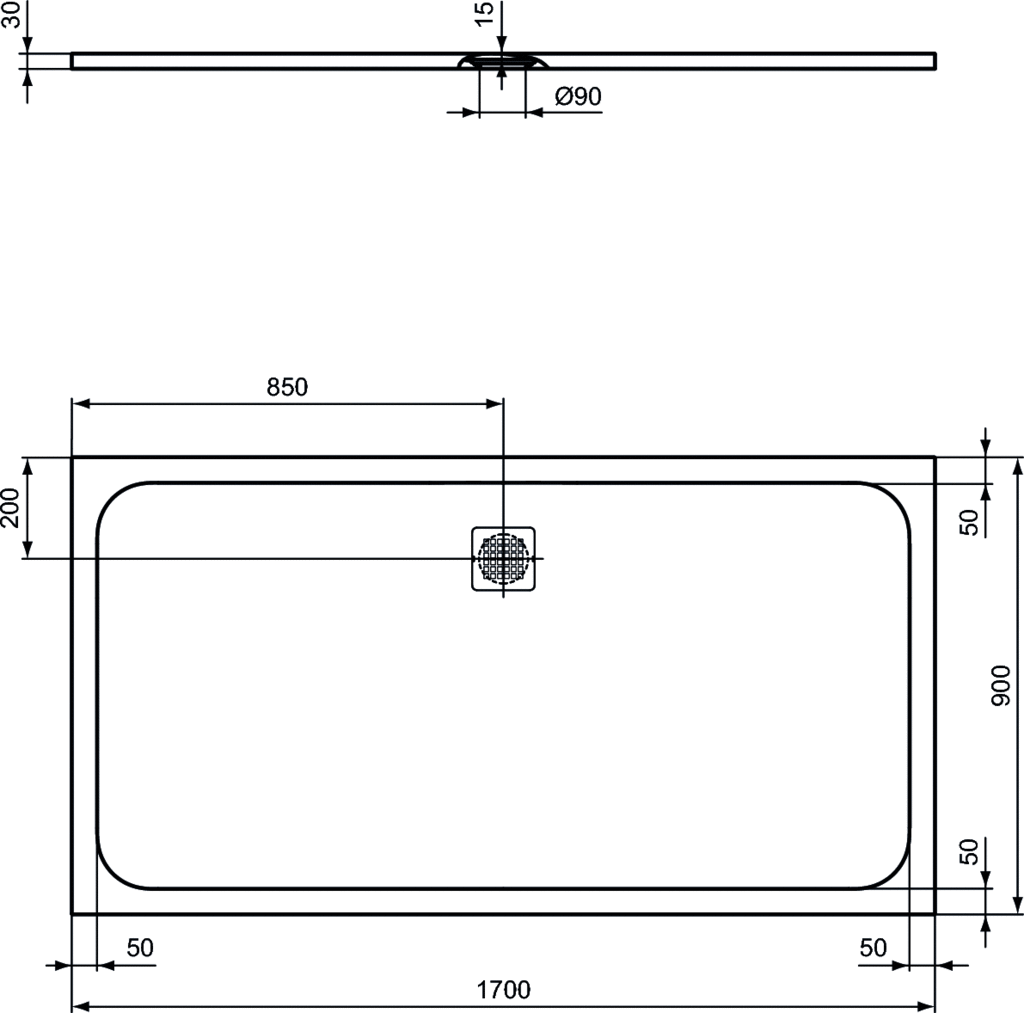 Brodzik grubości 30mm wykonany z materiału IDEAL SOLID. Klasa anty-poślizgowa C. Montaż na podłodze lub nad podłogą (do skompletowania z nogami do brodzika). Pokrywa odpływu ze stali nierdzewnej. Zalecane dodatkowe elementy: Syfon do brodzika - bez pokrywy (K936367). Uniwersalny zestaw nóg do brodzika (dla rozmiaru 1000 mm i większych - konieczne są 2 szt. K936467) (K936467).