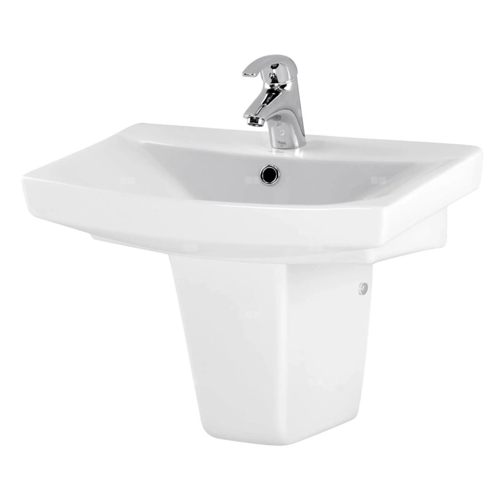 Elegancka umywalka CARINA 55 z otworem na armaturę i przelewem. Umywalka idealnie komponuje się z półpostumentem z serii CARINA. Równie dobrze będzie wyglądać na ścianie w połączeniu z chromowanym syfonem.