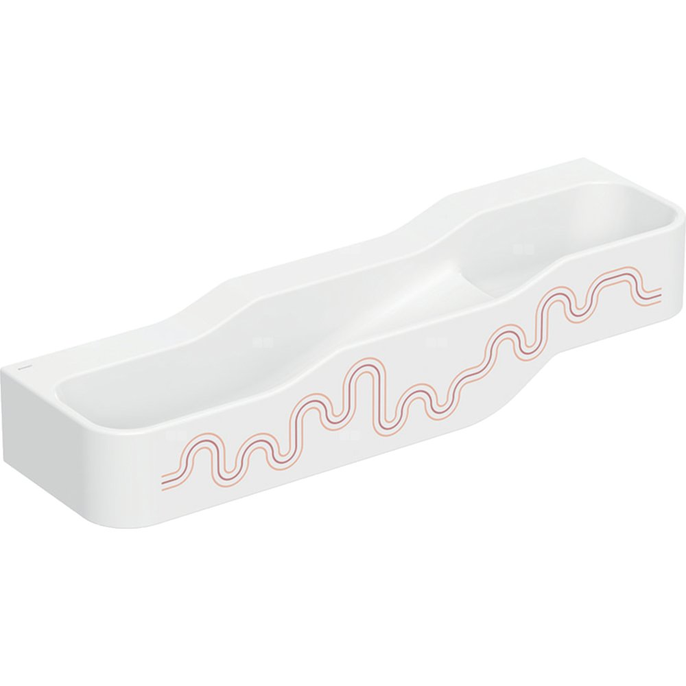 Umywalka GEBERIT Bambini 3-stanowiskowa prostokątna (rynna, elementy dekoracyjne), biała, 1400mm, bez otworu na baterię, bez odpływu przelewowego, półka od ściany
