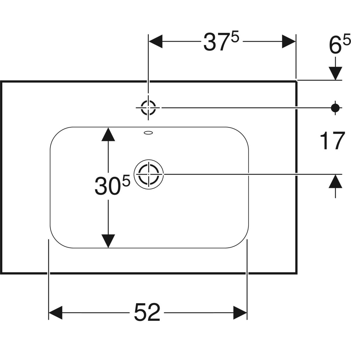 Umywalka GEBERIT iCon Light prostokątna, biała, 750mm, otwór na baterię na środku, z odpływem przelewowym, półki z obu stron