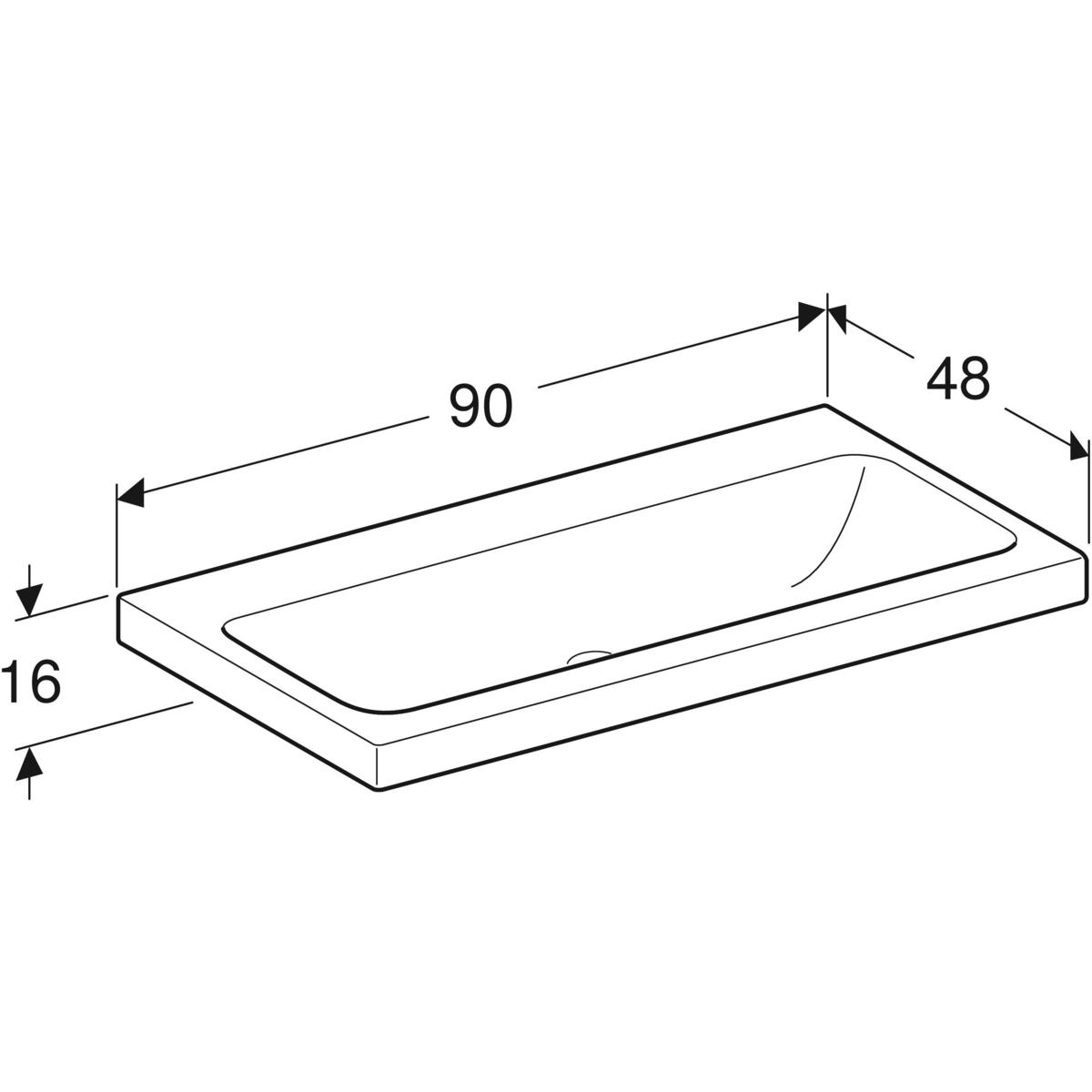 Umywalka GEBERIT iCon Light prostokątna, biała, 900mm, bez otworu na baterię, bez odpływu przelewowego, półka od ściany