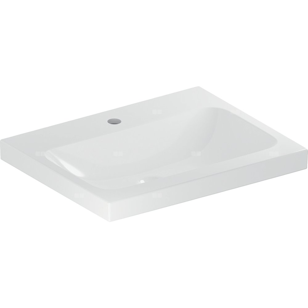 Umywalka GEBERIT iCon Light prostokątna, biała / KeraTect, 600mm, otwór na baterię na środku, bez odpływu przelewowego, półka od ściany