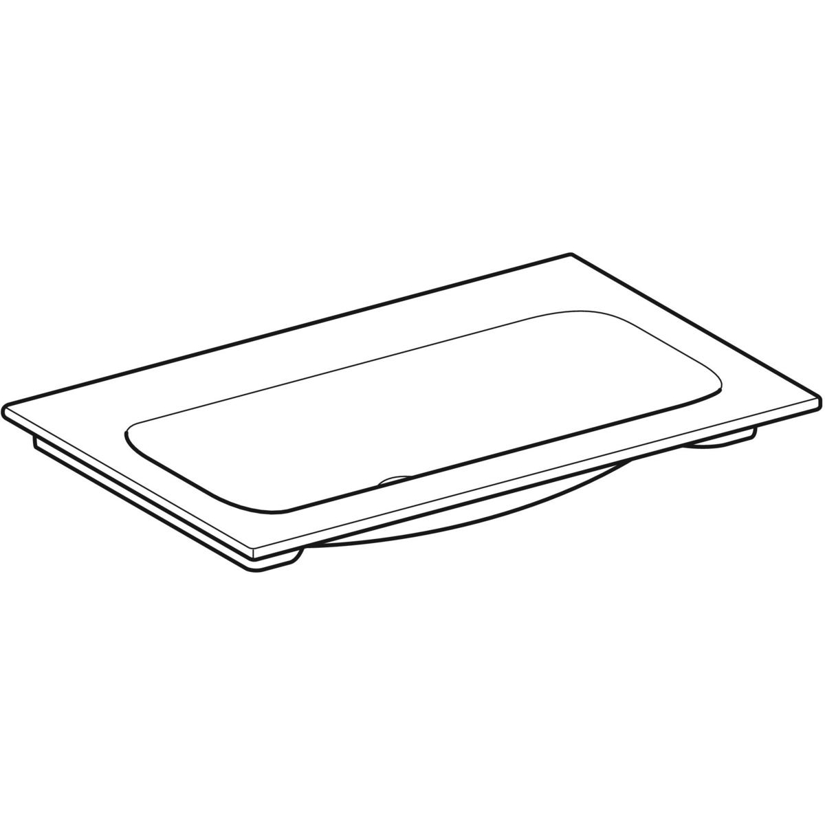 Umywalka GEBERIT iCon prostokątna, biała, 750mm, bez otworu na baterię, nakładany od góry, bez odpływu przelewowego, półka od ściany