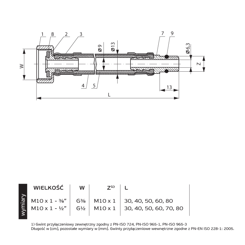 Wąż przyłączeniowy elastyczny PERFEXIM PHA-9145/C DN 8, GW x GZ, 1/2'' x M10, długość 800 mm