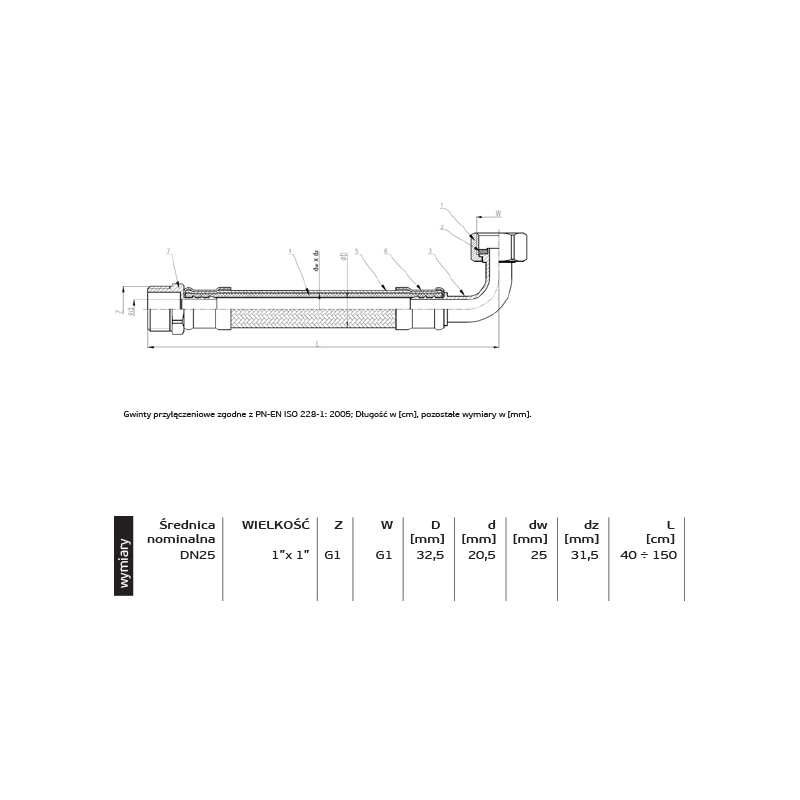 Wąż przyłączeniowy elastyczny PERFEXIM PHA-9156 DN 25, GW x GZ, 1'' x 1'', długość 1500 mm