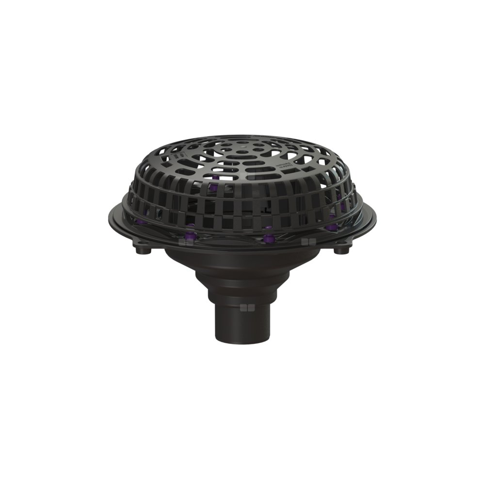 Wpust dachowy Ecoguss służy do odwodnienia punktowego i jest wyposażony w dociskowy kołnierz uszczelniający i osłonę przed żwirem. Przystosowane do recyklingu tworzywo kompozytowe Ecoguss spełnia najwyższe wymagania akustyczne, jest odporne na agresywne czynniki, odporne na temperaturę do 400°C i korozję. Dociskowy kołnierz uszczelniający z bolcami i śrubami ze stali nierdzewnej służy do dociskania lub zgrzewania taśm bitumicznych i polimerowo-bitumicznych oraz taśm uszczelniających z tworzywa sztucznego i elastomerów. Do uszczelnień wodoszczelnych mogą być stosowane tylko sprawdzone przez producenta membrany hydroizolacyjne. Wyrównanie potencjałów nie jest konieczne. Wskazówka: W przypadku dachu trapezowego o powierzchni przekraczającej 2500 metrów kwadratowych należy skonsultować się z centrum serwisowym firmy KESSEL.