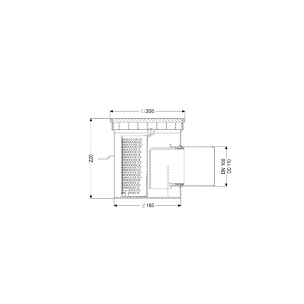 Wpust Ferrofix 185, odpływ boczny, 206x206, ruszt kratowy M125, bez kołnierza
