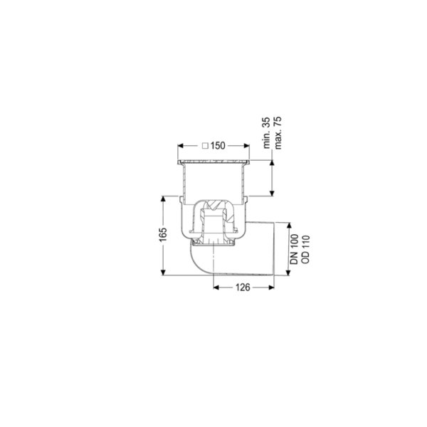 KESSEL Wpust podłogowy/stropowy Ferrofix, System 125, wielkość nominalna (DN) 100, typ pokrywy Kratka szczelinowa, dł. pokrywy 138 mm, króciec boczny, z regulowaną wysokością, wymiar zewnętrzny (DZ) 110 mm, pojemność 22,97 dm³