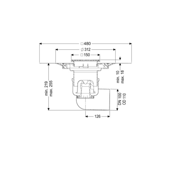 KESSEL Wpust podłogowy/stropowy Ferrofix, System 125, wielkość nominalna (DN) 100, typ pokrywy Kratka szczelinowa, dł. pokrywy 138 mm, króciec boczny, regulowany w trzech wymiarach, wymiar zewnętrzny (DZ) 110 mm, pojemność 66,7 dm³