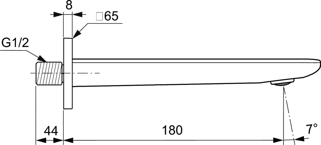 Wylewka długości 180 mm. Metalowa chromowana rozeta 65x65 mm z logo Ideal Standard. Aerator M24x1. Podłączenie G1/2 .