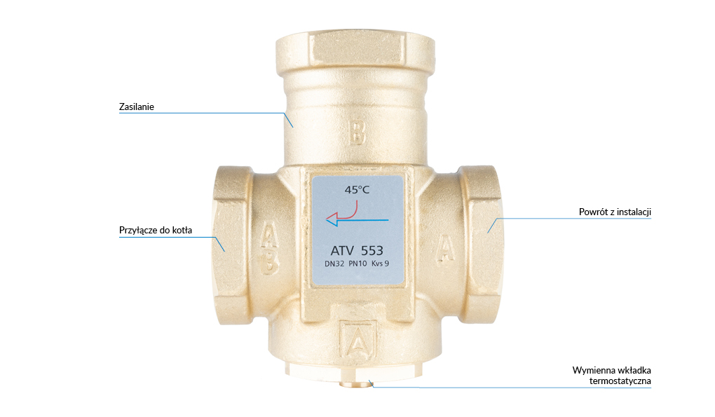 Stosowany w instalacjach grzewczych z kotłami stałopalnymi, zalecany szczególnie do instalacji z buforami ciepła.Montowany na powrocie z instalacji.