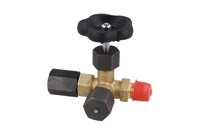 Kurek manometryczny przelotowy z przyłączem kontrolnym.