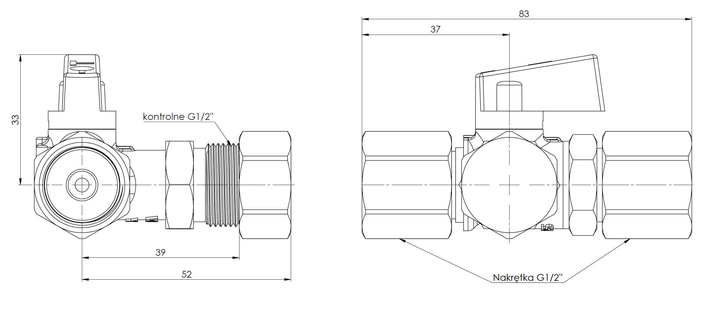 Posiada przyłącze kontrolne z gwintem zewnętrznym.