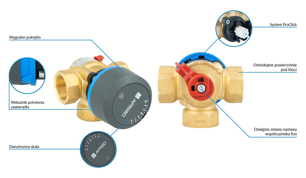 Zawór obrotowy trójdrogowy AFRISO ARV 382 Vario ProClick, mieszający, DN 20