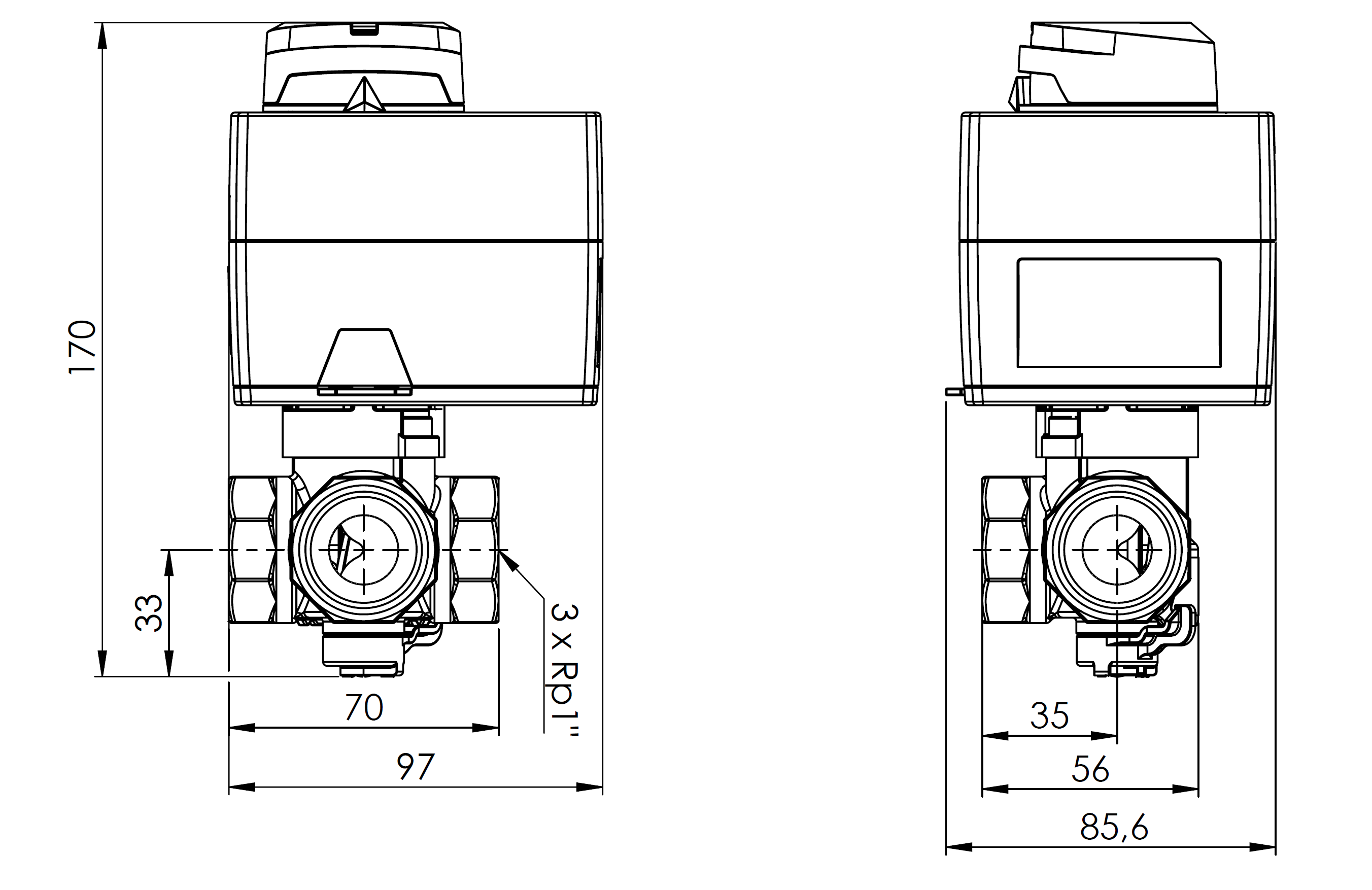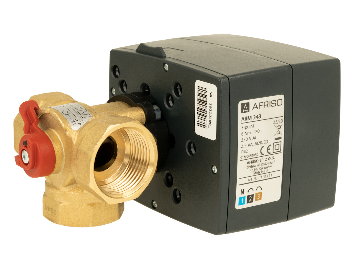 Zawór obrotowy trójdrogowy AFRISO ARV 384 Vario ProClick, mieszający, Siłownik elektryczny ARM 343, DN 25