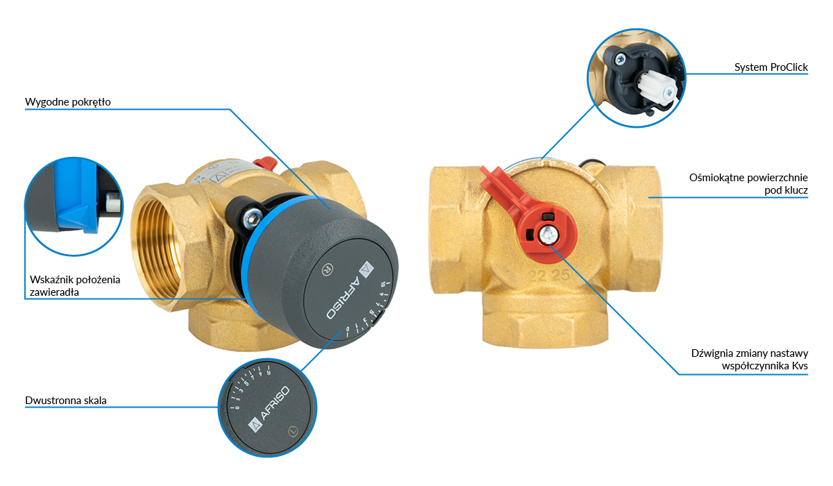 Zawór obrotowy trójdrogowy AFRISO ARV 385 Vario ProClick, mieszający, DN 32