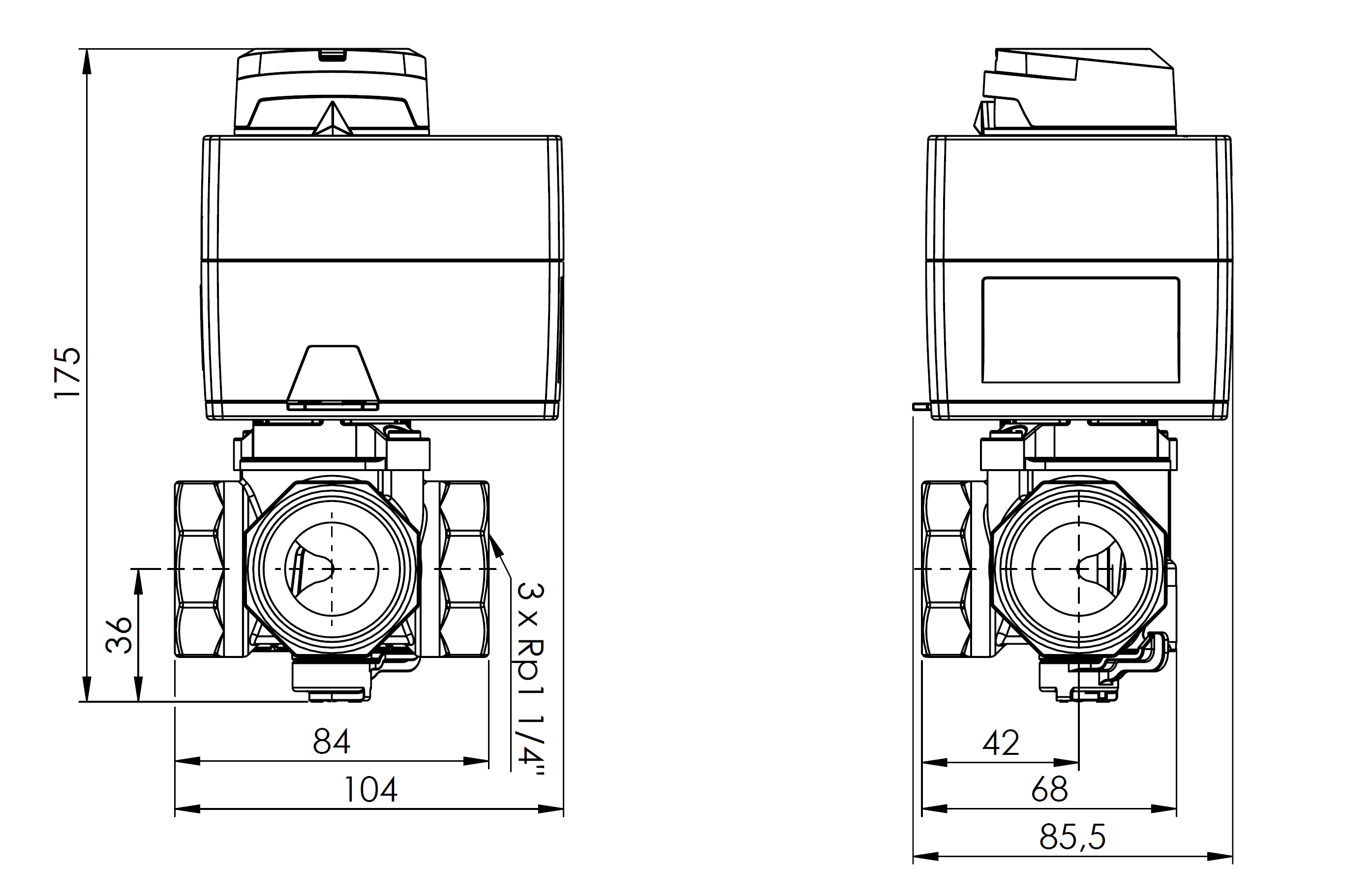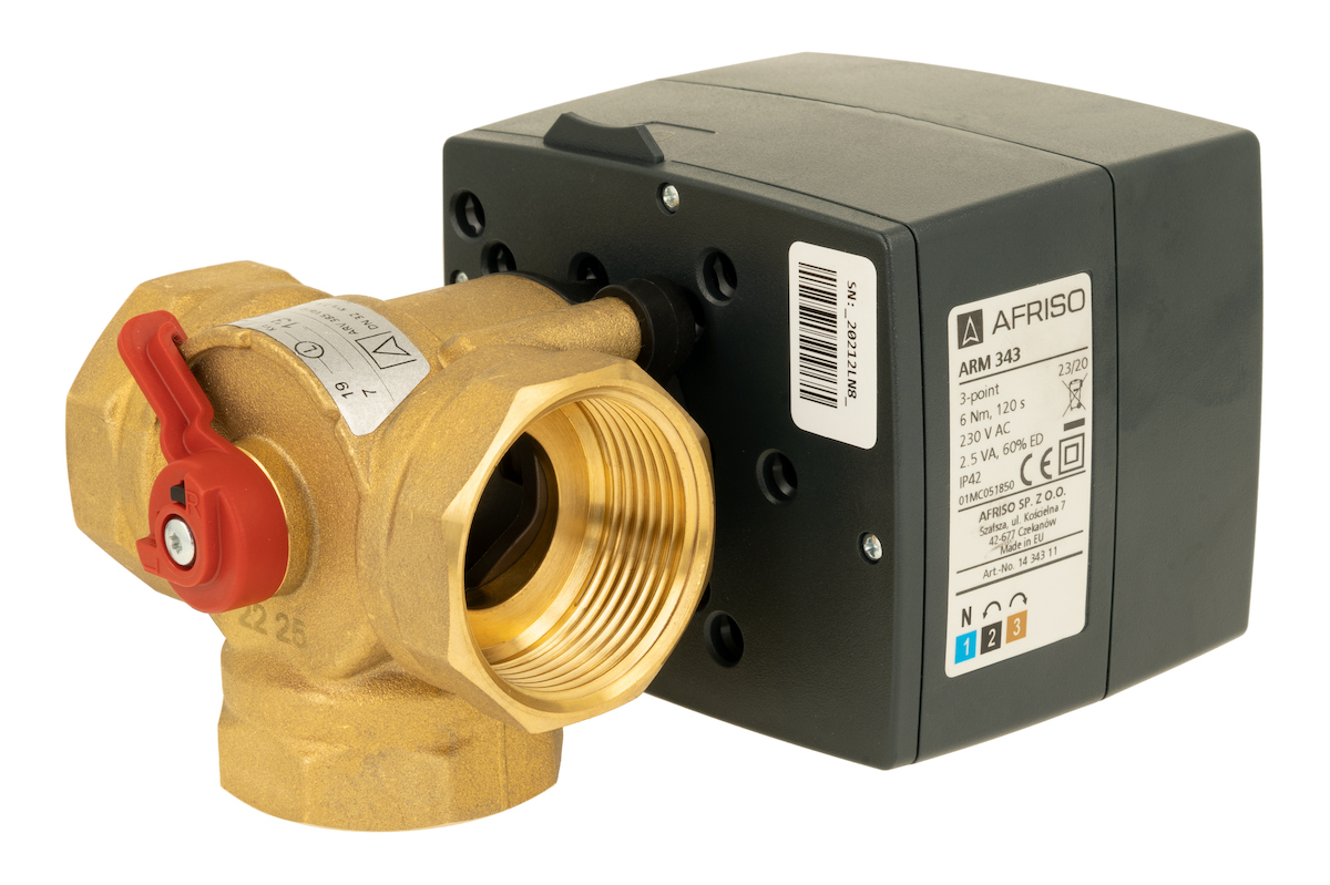 Zawór obrotowy trójdrogowy AFRISO ARV 385 Vario ProClick, mieszający, Siłownik elektryczny ARM 343, DN 32