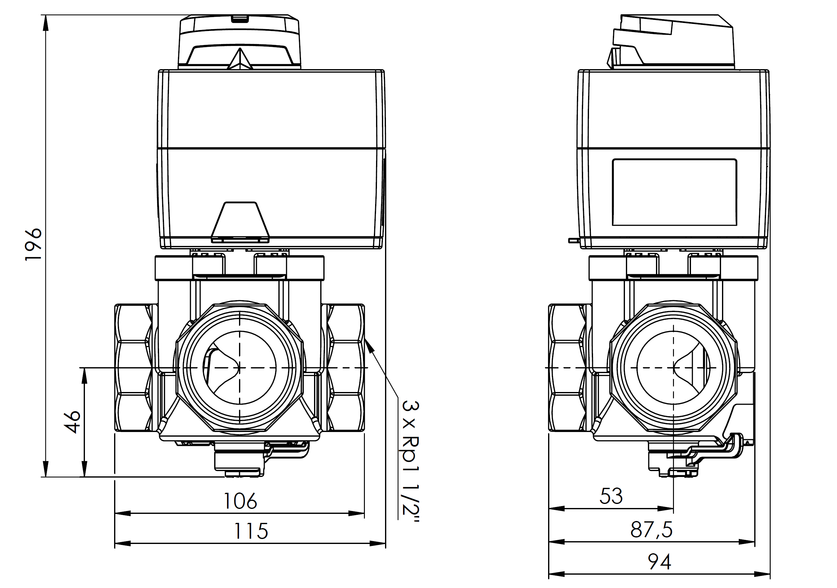 Zawór obrotowy trójdrogowy AFRISO ARV 386 Vario ProClick, mieszający, Siłownik elektryczny ARM 343, DN 40