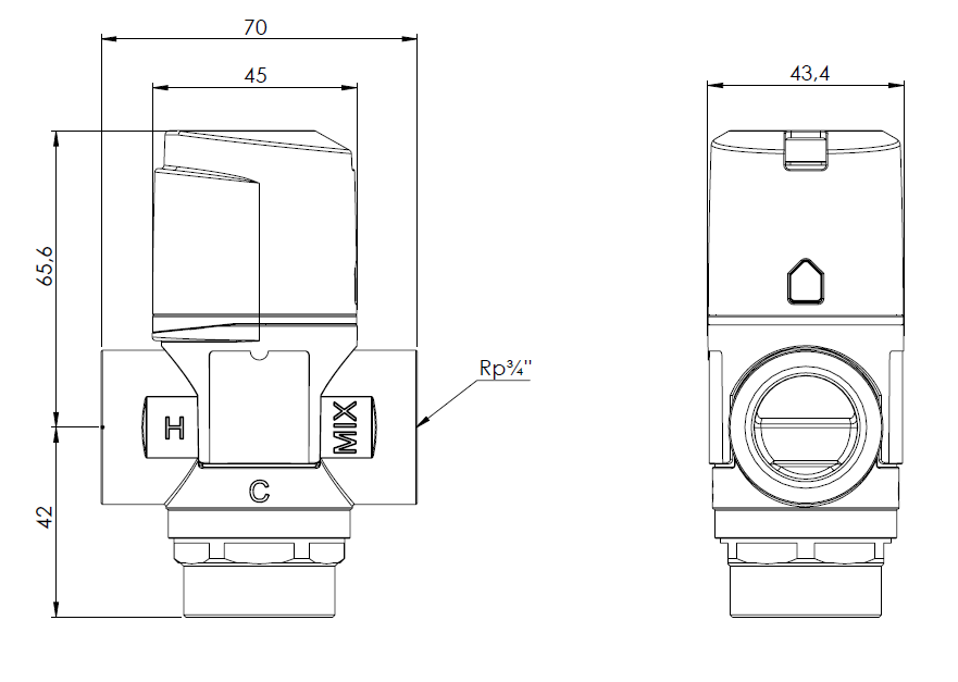 Zawór regulacyjny termostatyczny do wody ciepłej AFRISO ATM 331 mosiądz GW 3/4'', DN 20, zakres temp. 20-43'C, Kvs 1.6 m3/h, maksymalna temperatura 90'C, maksymane ciśnienie 10 bar